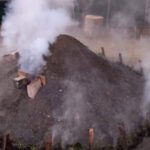 Gianni Della Botte, rappresentante della Pro Loco locale e esperto di questa metodologia carbonara, organizza anche laboratori didattici e ci racconta: “Questa tecnica di produzione del carbone di legna è antica, veniva praticata nei nostri boschi e il carbone prodotto veniva portato in molte città umbre, tra cui Perugia e Assisi. Era un’attività di grande importanza, che rappresentava un sostegno economico significativo per le famiglie. Si costruisce una sorta di cupola con la legna disposta in modo circolare e ordinato, che viene poi ricoperta di terra. Una volta terminata la preparazione, si dà fuoco alla pila e, dopo alcuni giorni di lenta combustione, si può recuperare il carbone di legna così prodotto e pronto all’uso.”